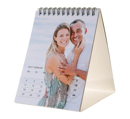 Dieser Foto Tischkalender im Format 11x15 cm, besteht aus 13 Fotos. Sie können die Seiten selber gestalten und auch Text einfügen. Der Kalender wird mit einer Drahtspiralbindung gebunden und auf der Rückseite gibt ein Karton dem Kalender die nötige Stabilität. Der Kalender kann ohne zusätzliche Hilfsmittel aufgestellt werden.