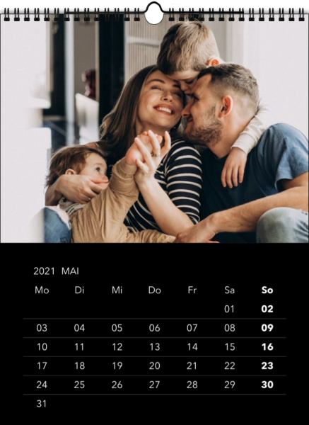 Fotokalender 20x27 cm A4 mit schwarzem Kalendarium 2026